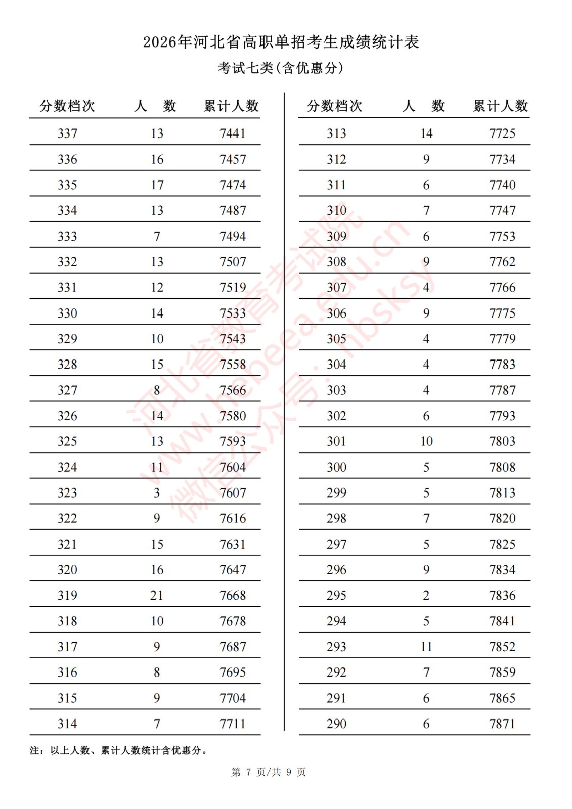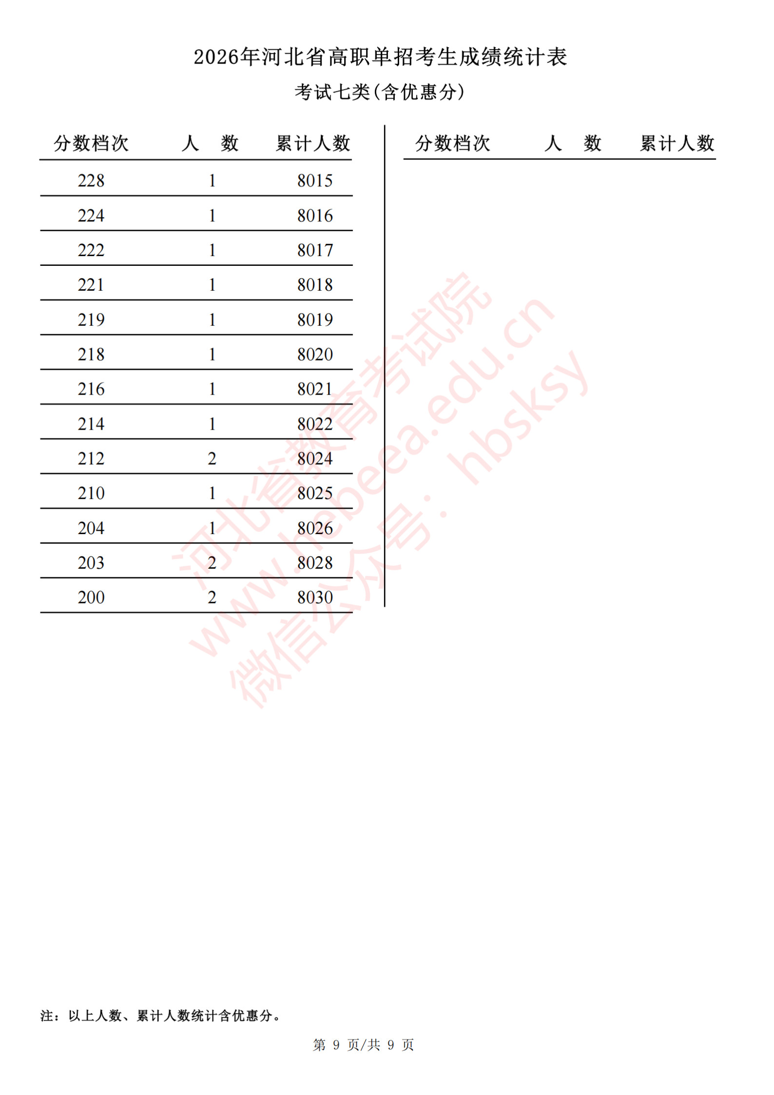 2026年河北省高职单招考生成绩统计表考试七类(含优惠分)