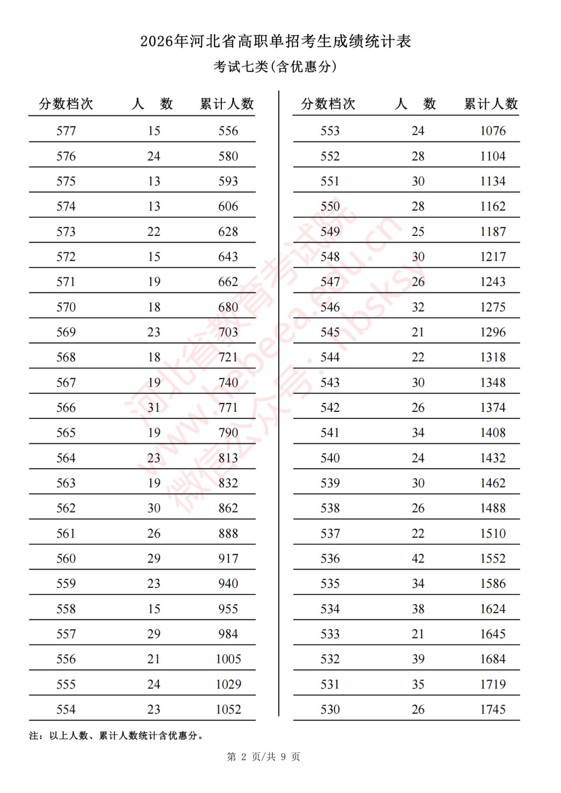 2026年河北省高职单招考生成绩统计表考试七类(含优惠分)
